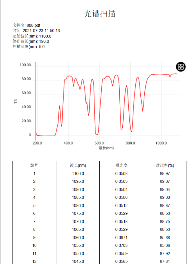 波長范圍190—1100 nm,波長分辨率0.1 nm
